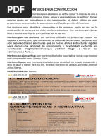 morteros (cemento, cal y arena), que varía de acuerdo con la finalidad y las