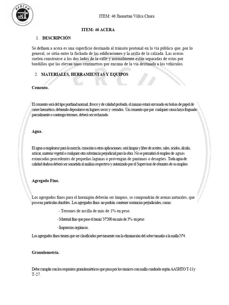supervisor de obras/o contratista además que su estructura será homogénea y durable,