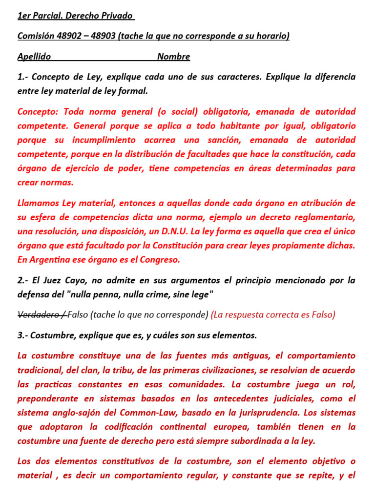 1.- Concepto de Ley, explique cada uno de sus caracteres. Explique la diferencia