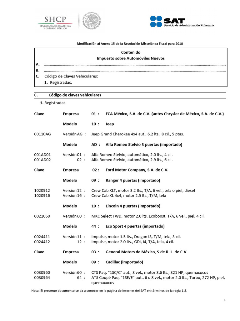 Clave Empresa 01 : FCA México, S.A. de C.V. (antes Chrysler de México, S.A. de C.V.)