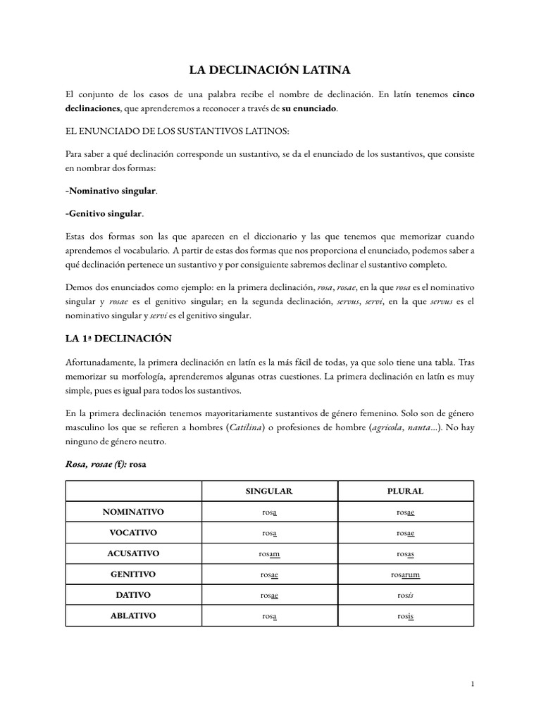 El conjunto de los casos de una palabra recibe el nombre de declinación. En latín tenemos cinco