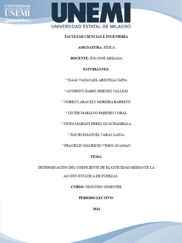 componentes y sistemas. Se aborda la determinación del coeficiente de elasticidad de un material