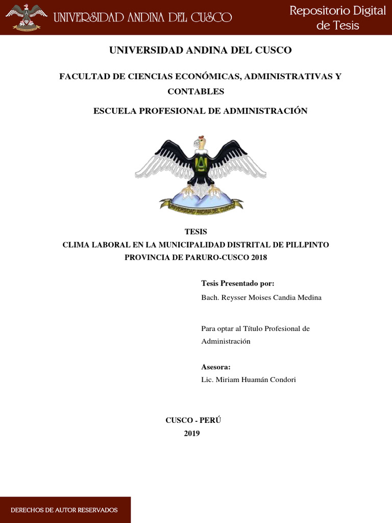 TEMA: CLIMA LABORAL EN LA MUNICIPALIDAD DISTRITAL DE PILLPINTO-PROVINCIA DE PARURO-CUSCO 2018
