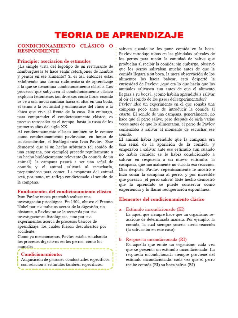 Es la respuesta que un organismo aprende a emi- Son básicamente los siguientes cinco principios: