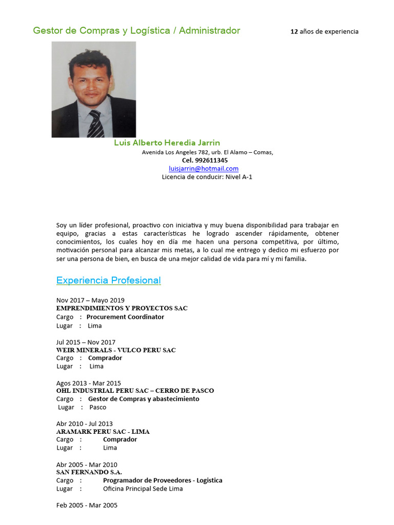 Gestor de Compras y Logística / Administrador 12 años de experiencia