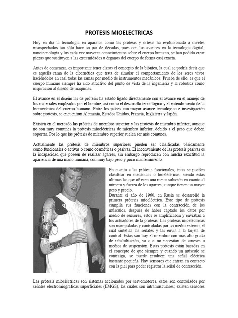 primera prótesis mioeléctrica. Este tipo de prótesis