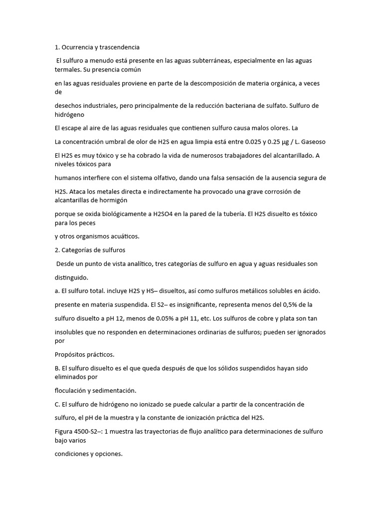 a. El sulfuro total. incluye H2S y HS– disueltos, así como sulfuros metálicos solubles en ácido.