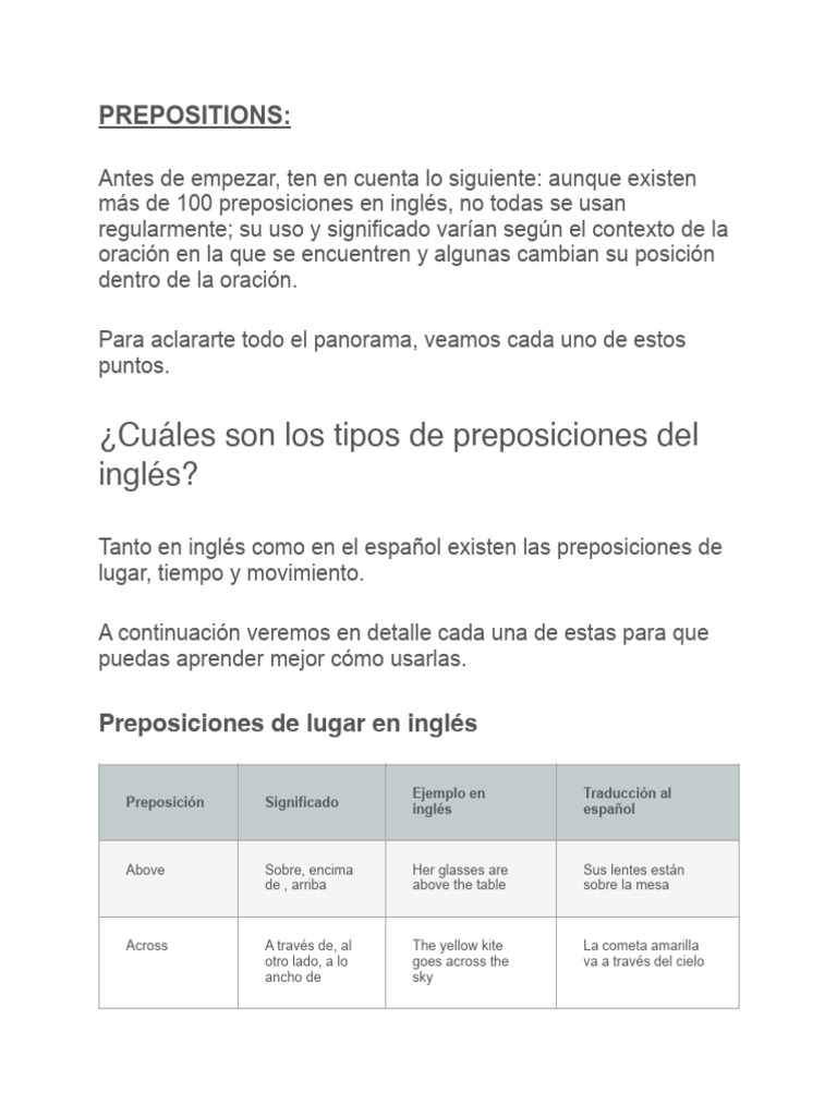 ¿Cuáles son los tipos de preposiciones del