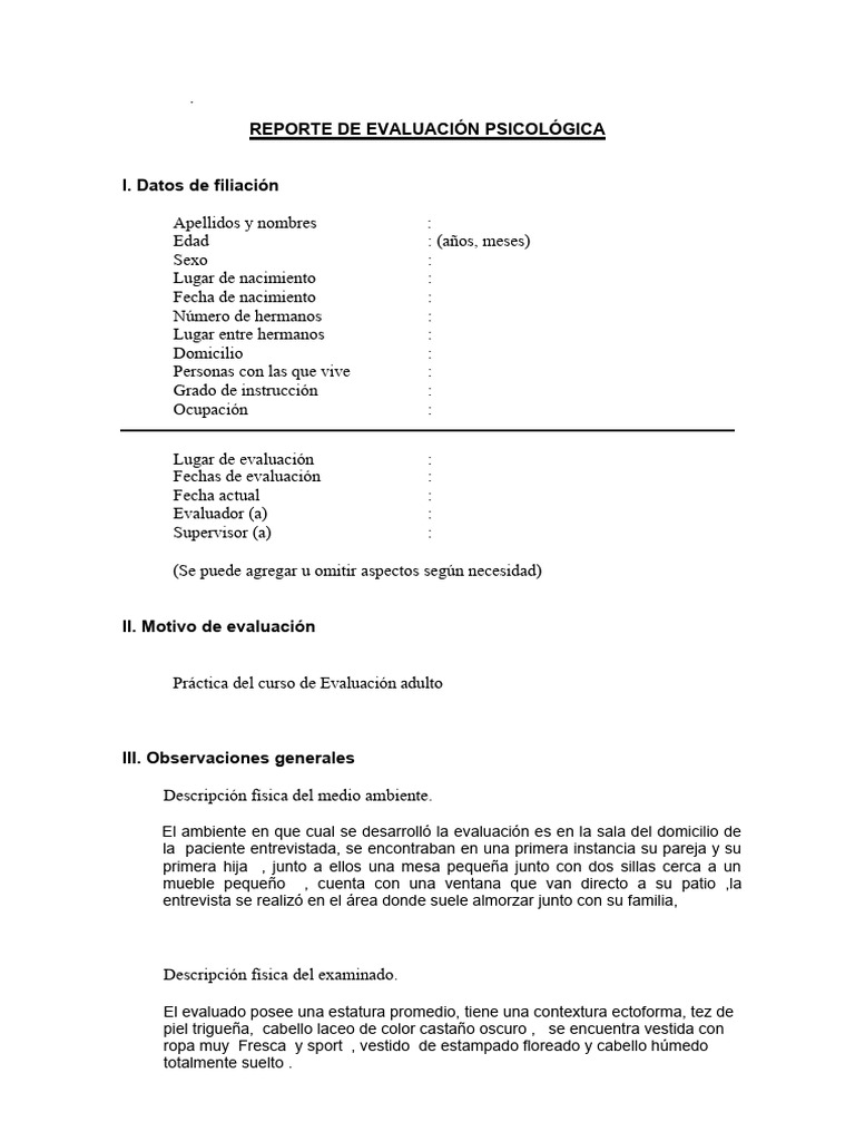 REPORTE DE EVALUACIÓN PSICOLÓGICA