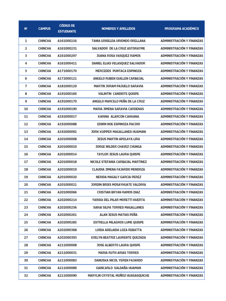 92 CHINCHA A231001319 JUAN JOSE LAINEZ MORENO ADMINISTRACIÓN Y FINANZAS