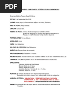 tabla de la embarcación, las cuales se entregarán los días del torneo en la mesa del juez ubicado