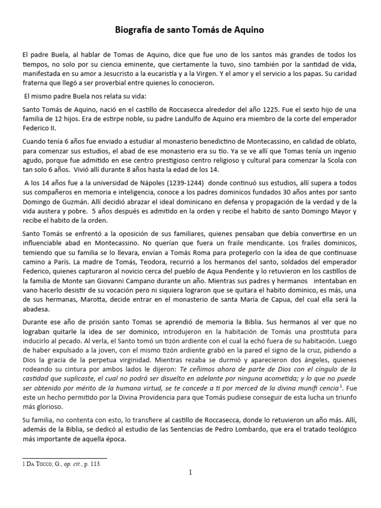 Biografía de santo Tomás de Aquino