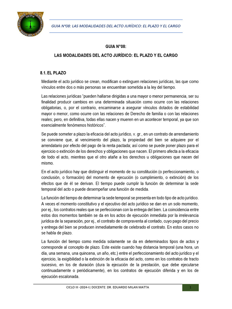 LAS MODALIDADES DEL ACTO JURÍDICO: EL PLAZO Y EL CARGO
