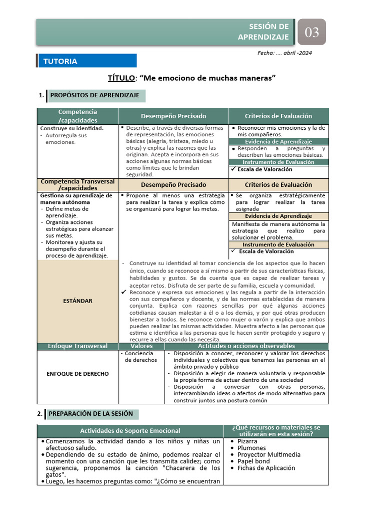 Construye su identidad. Describe, a través de diversas formas Reconocer mis emociones y la de