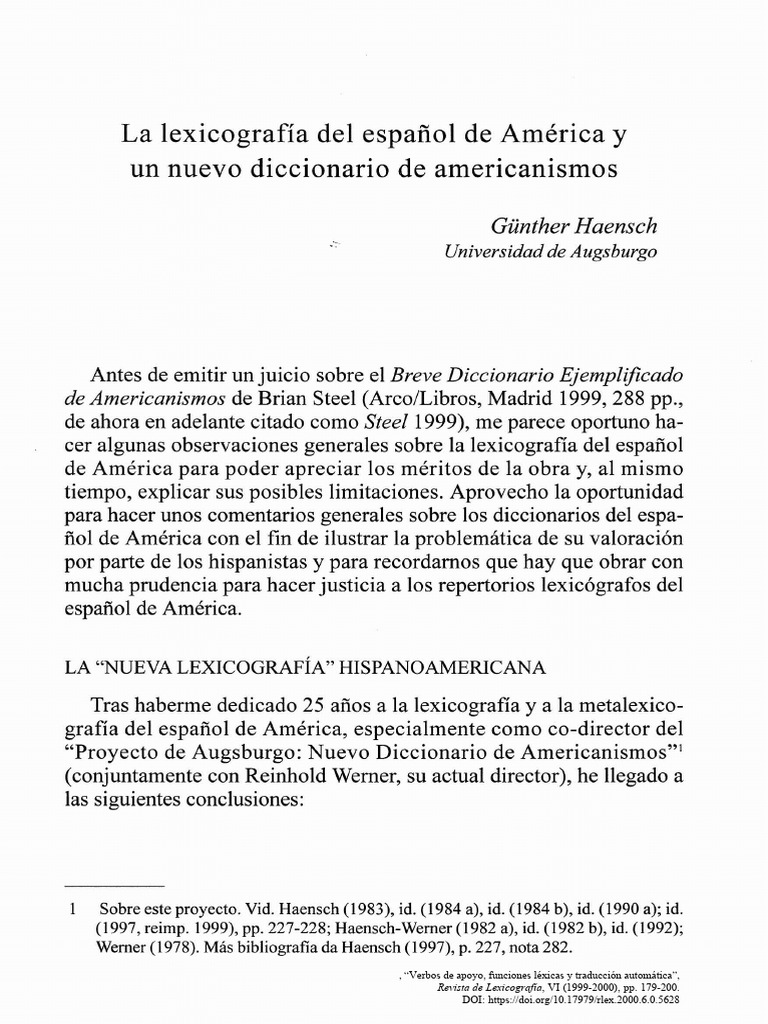 - - (1979): "Zum Stand der Lexikographie des amerikanischen Spanisch",