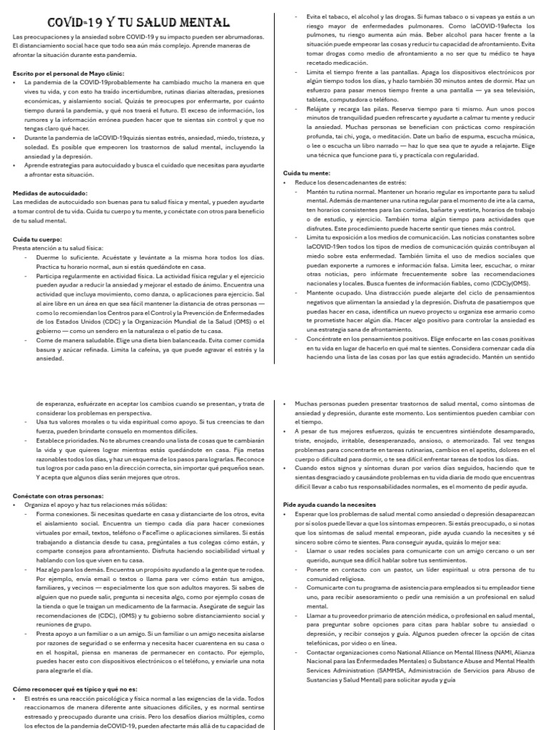 de esperanza, esfuérzate en aceptar los cambios cuando se presentan, y trata de • Muchas personas pueden presentar trastornos de salud mental, como síntomas de