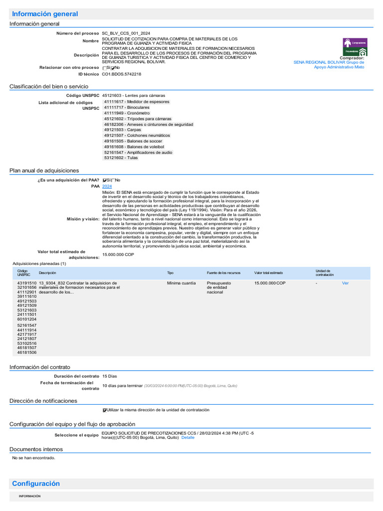 43191510 13_9304_832 Contratar la adquisicion de Mínima cuantía Presupuesto 15.000.000 COP - Ver
