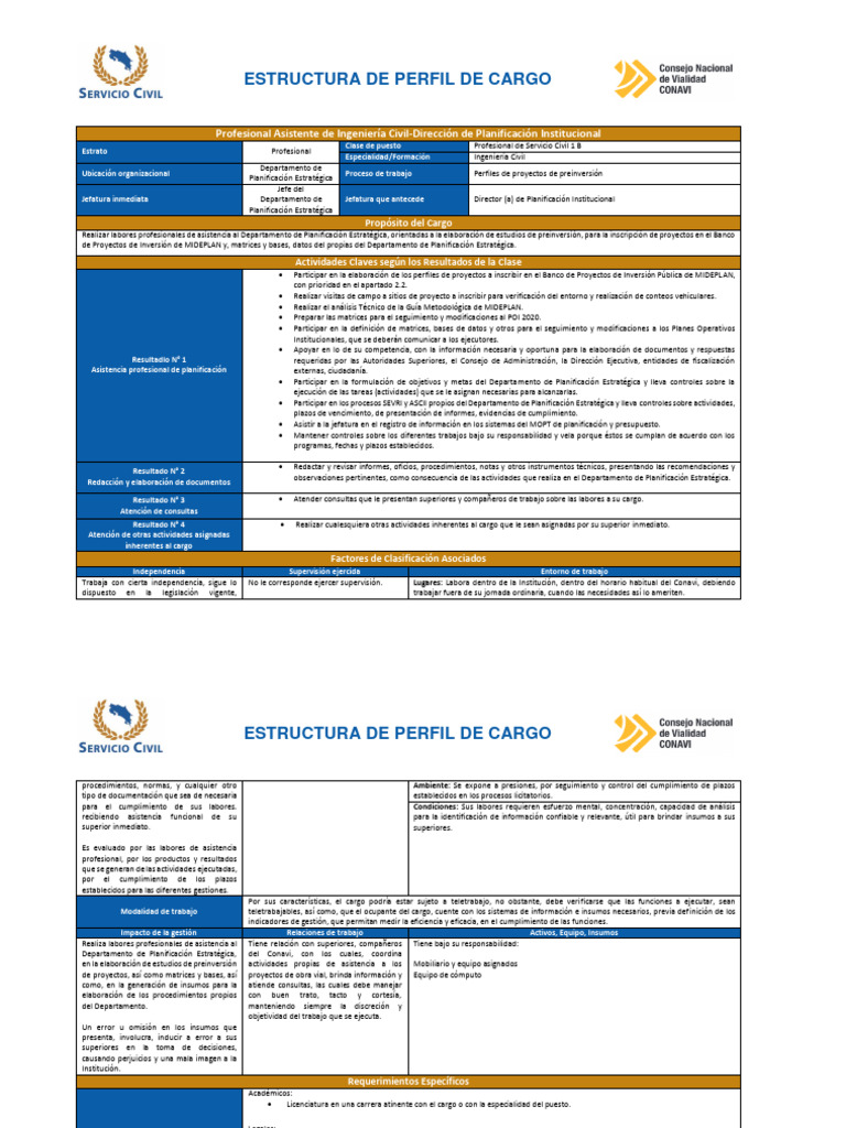 Clase de puesto Profesional de Servicio Civil 1 B