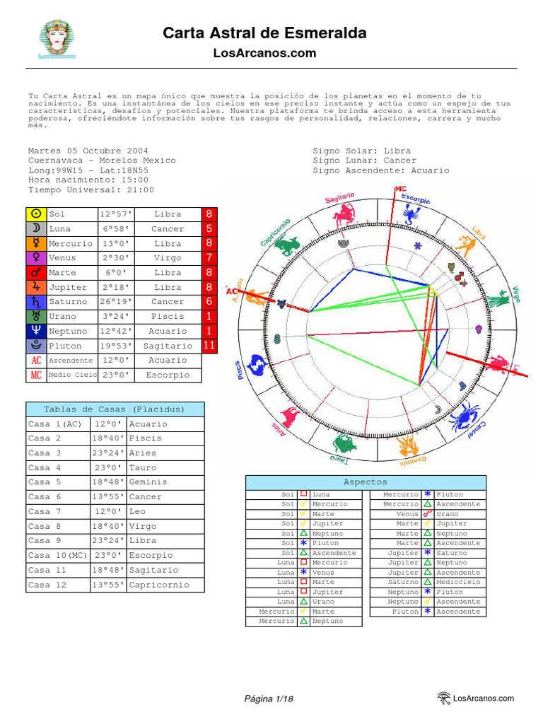 Long:99W15 - Lat:18N55 Signo Ascendente: Acuario