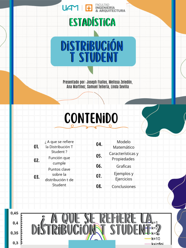 PARA LA MEDIA DE UNA POBLACIÓN CUANDO LA MUESTRA ES PEQUEÑA O LA DESVIACIÓN ESTÁNDAR POBLACIONAL ES DESCONOCIDA PERMITIENDO REALIZAR PRUEBAS DE