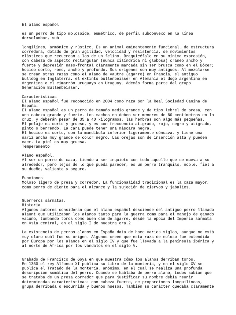 siglo v. Se trataba de ejemplares robustos y primitivos, los alanos utilizados