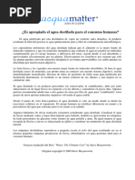 Agua destilada segn la Medicina Alternativa El consumo de agua destilada sigue siendo recomendada hoy por sectores de medicina alternativa al igual que lo era desde finales del siglo XIX. [cita requerida]
