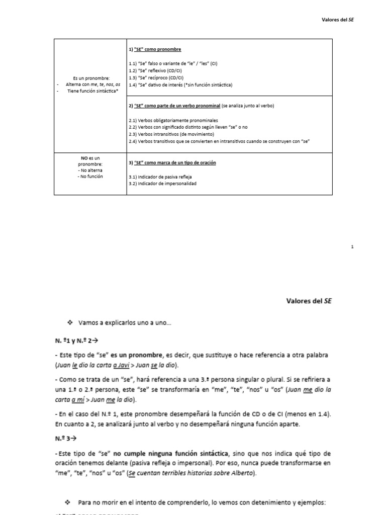 - En el caso del N.º 1, este pronombre desempeñará la función de CD o de CI (menos en 1.4).