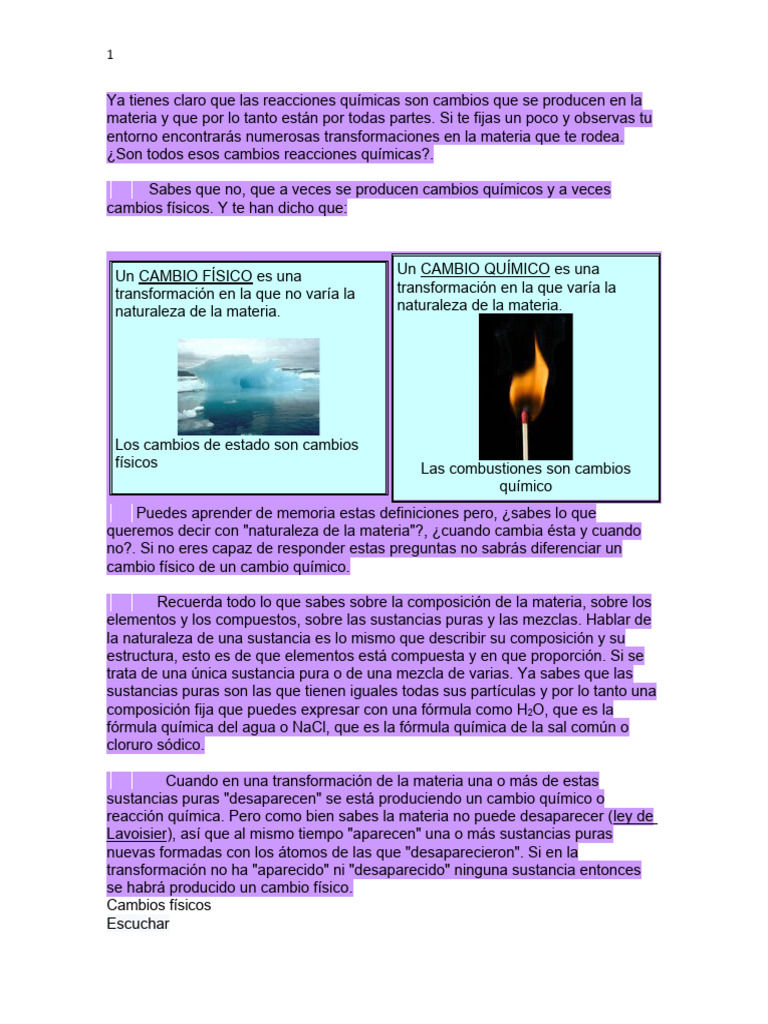 sustancias puras "desaparecen" se está produciendo un cambio químico o