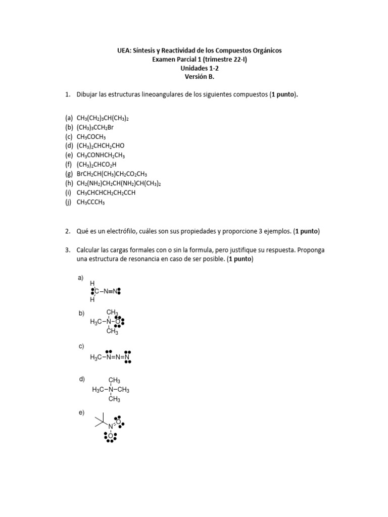 1. Dibujar las estructuras lineoangulares de los siguientes compuestos (1 punto).