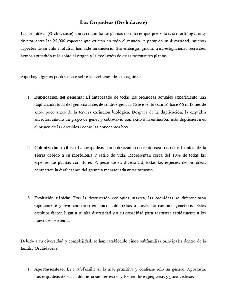 Aquí hay algunos puntos clave sobre la evolución de las orquídeas: