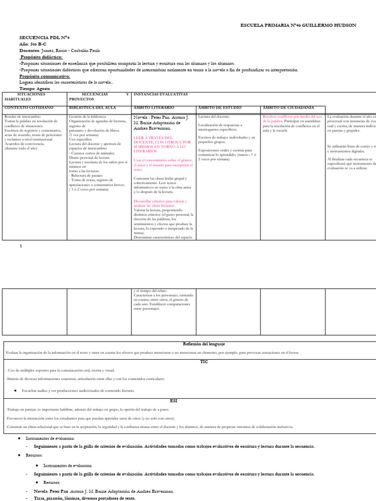 Rondas de intercambio Gestión de la biblioteca Novela : Peter Pan. Autora J. Lectura del docente. Resolver conflictos por medio del uso La evaluación durante el año es
