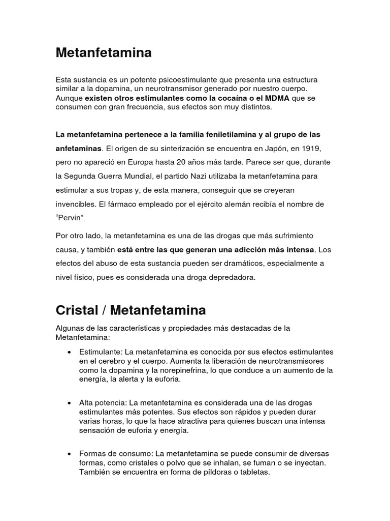 • Estimulante: La metanfetamina es conocida por sus efectos estimulantes