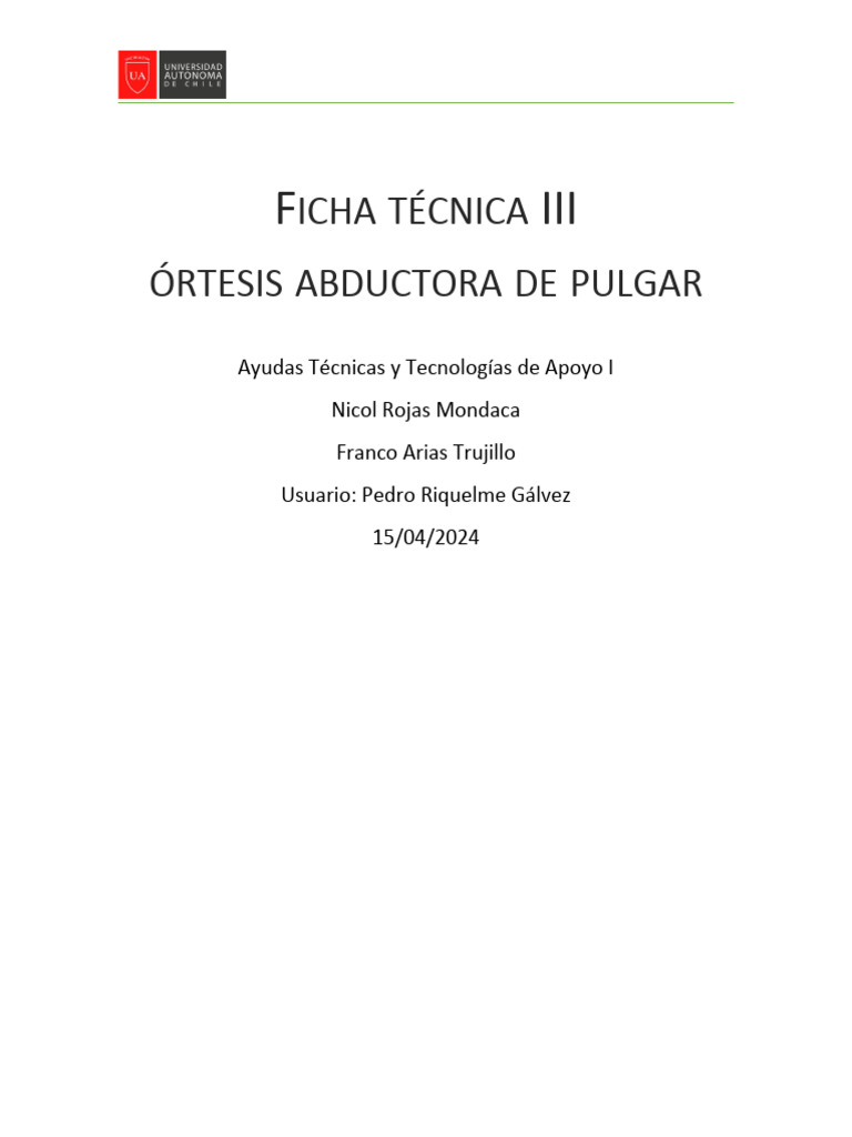 salud médica del usuario. Esta ortesis se ocupa principalmente en diagnósticos de