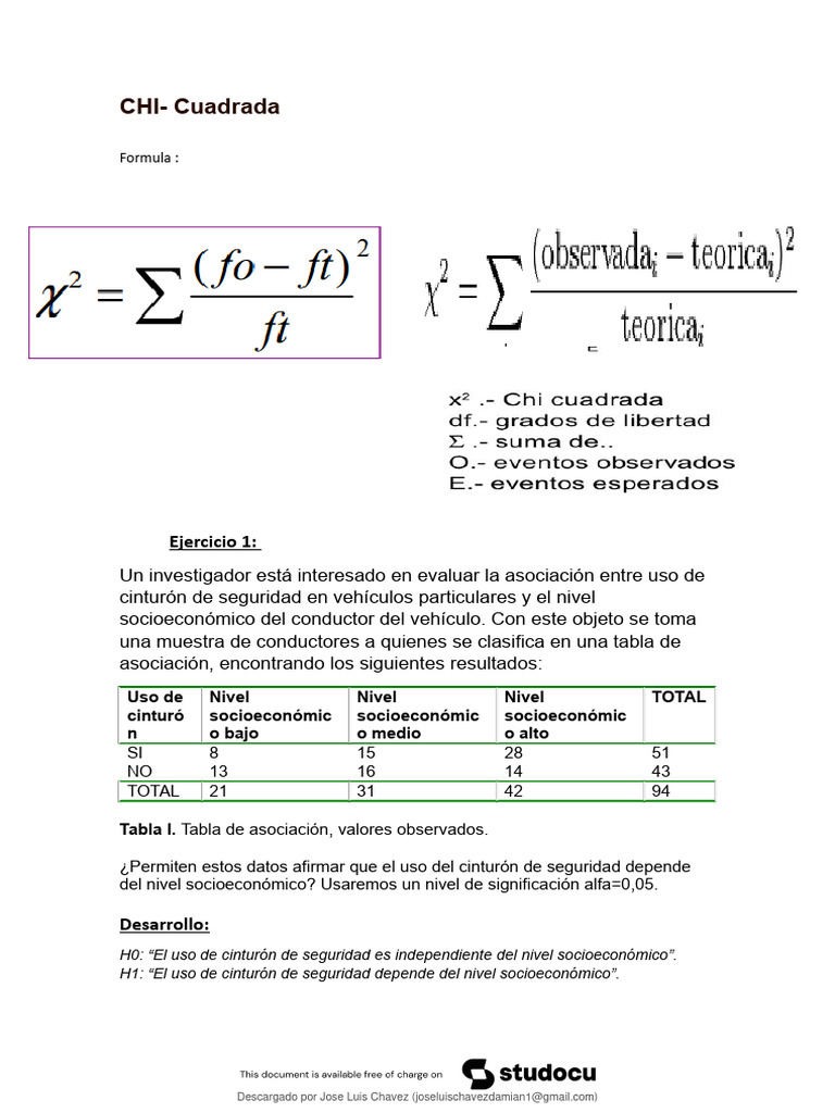 H0: “El uso de cinturón de seguridad es independiente del nivel socioeconómico”.