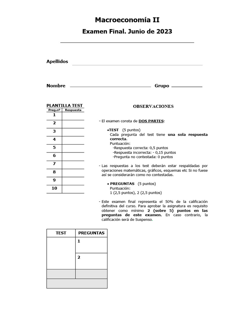 Examen Final Macroeconomía II – Junio 2023