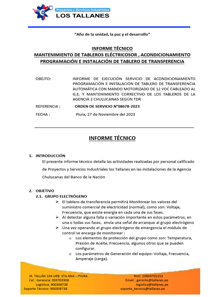 El presente informe técnico detalla las actividades realizadas por personal calificado