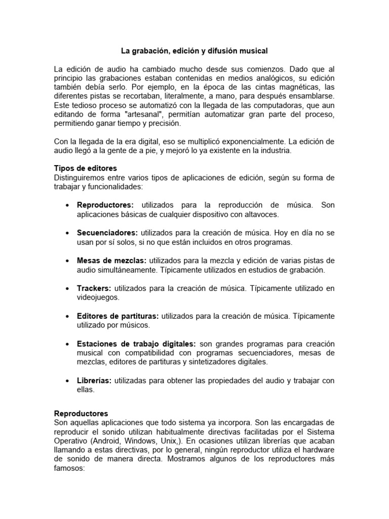 mezclas, editores de partituras y sintetizadores digitales.