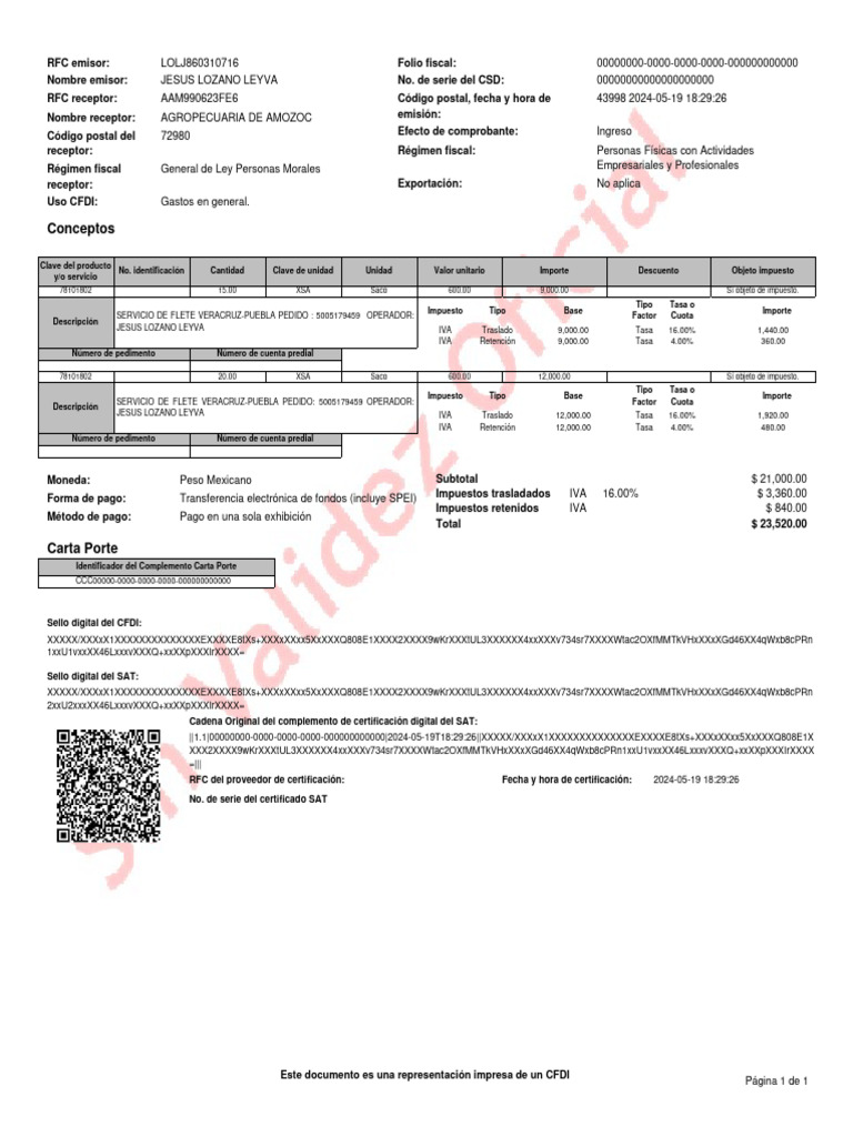 RFC del proveedor de certificación: Fecha y hora de certificación: 2024-05-19 [Link]