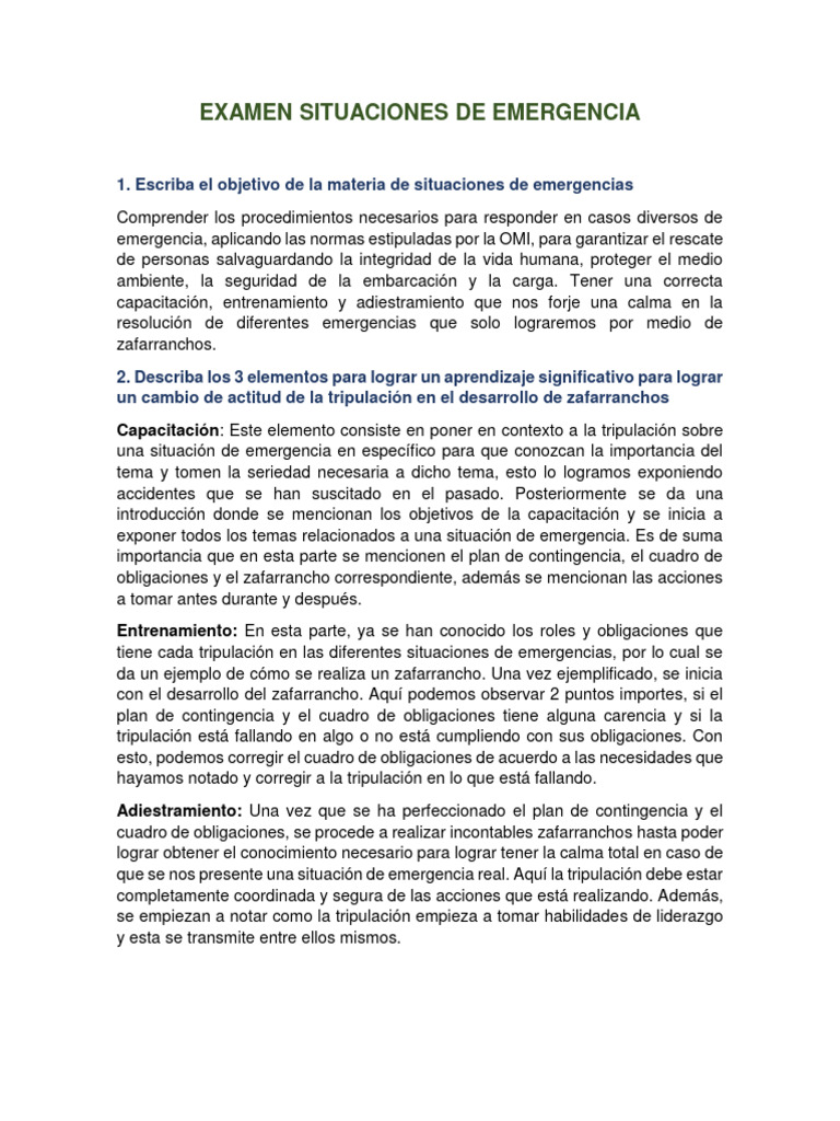 1. Escriba el objetivo de la materia de situaciones de emergencias