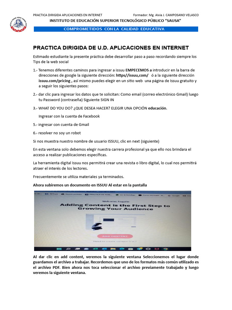 PRACTICA DIRIGIDA APLICACIONES EN INTERNET Formador: Mg. Alvia J. CAMPOSANO VELASCO
