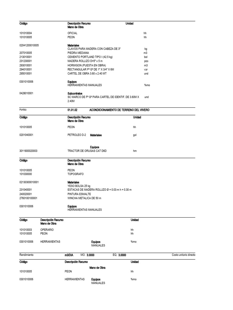 Unidad Cuadrilla Cantidad Precio S/. Parcial S/.