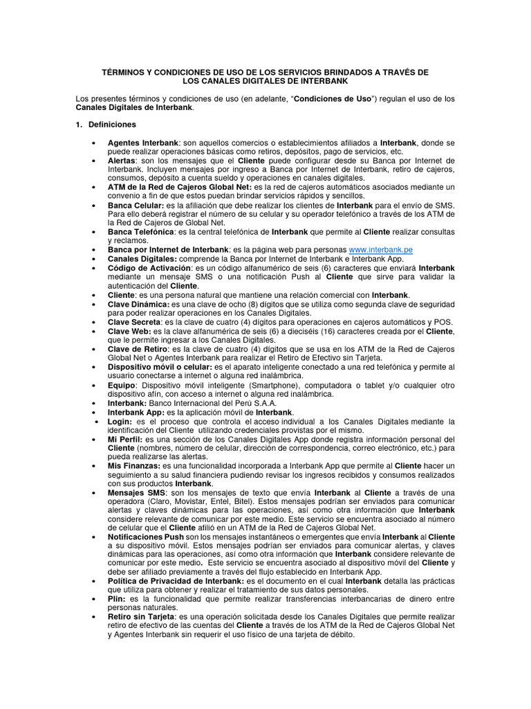 eventualmente modificadas, complementadas y/o sustituidas por Interbank, siendo efectivas estas