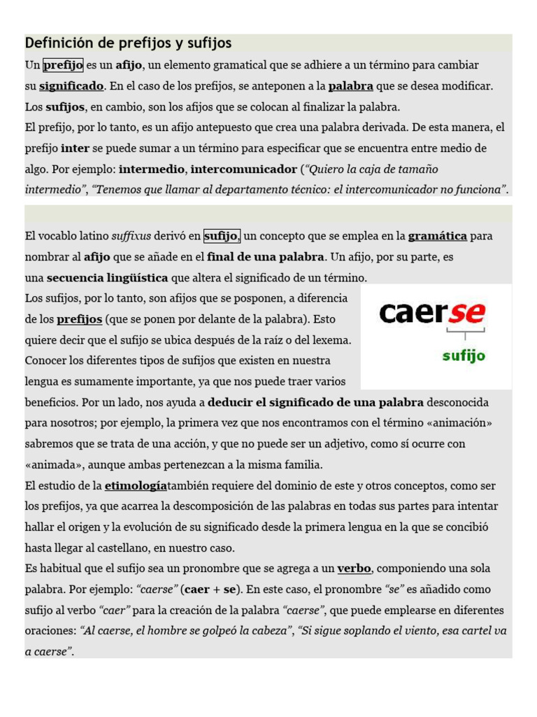 sufijo al verbo “caer” para la creación de la palabra “caerse”, que puede emplearse en diferentes