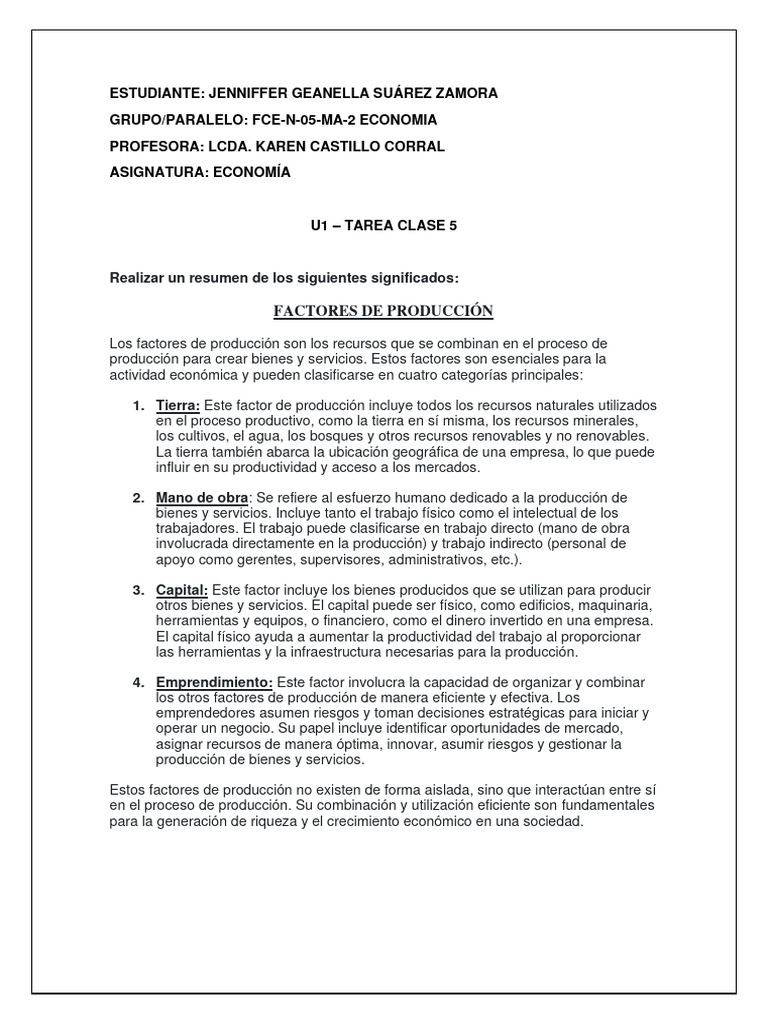 producción para crear bienes y servicios. Estos factores son esenciales para la