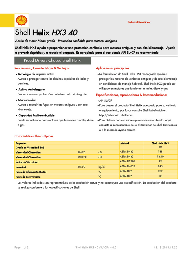 Page 1 of 2 Shell Helix HX3 40 (SL/CF), v 4.0 19.12.2013.14.25
