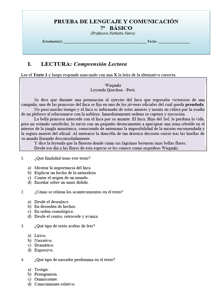 I. LECTURA: Comprensión Lectora