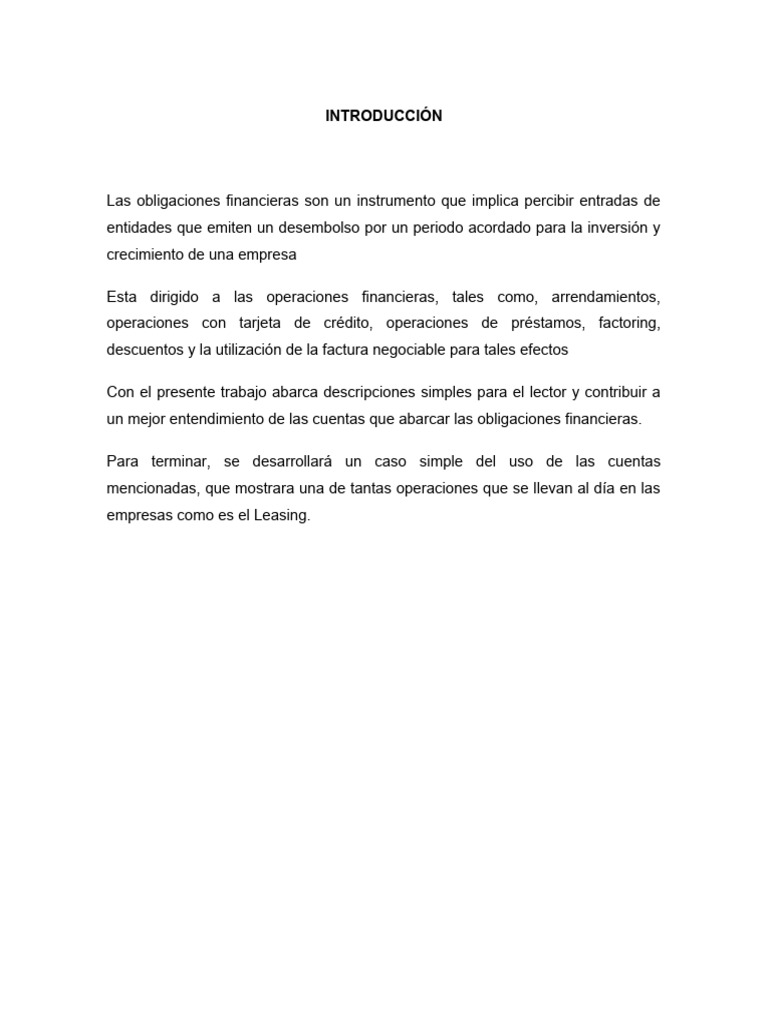 Esta dirigido a las operaciones financieras, tales como, arrendamientos,