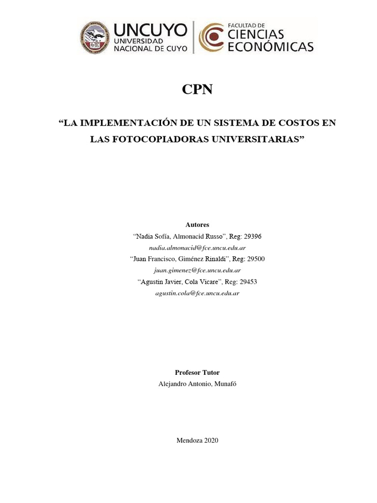 En el presente trabajo se analizarán las fotocopiadoras universitarias, teniendo como referencia para