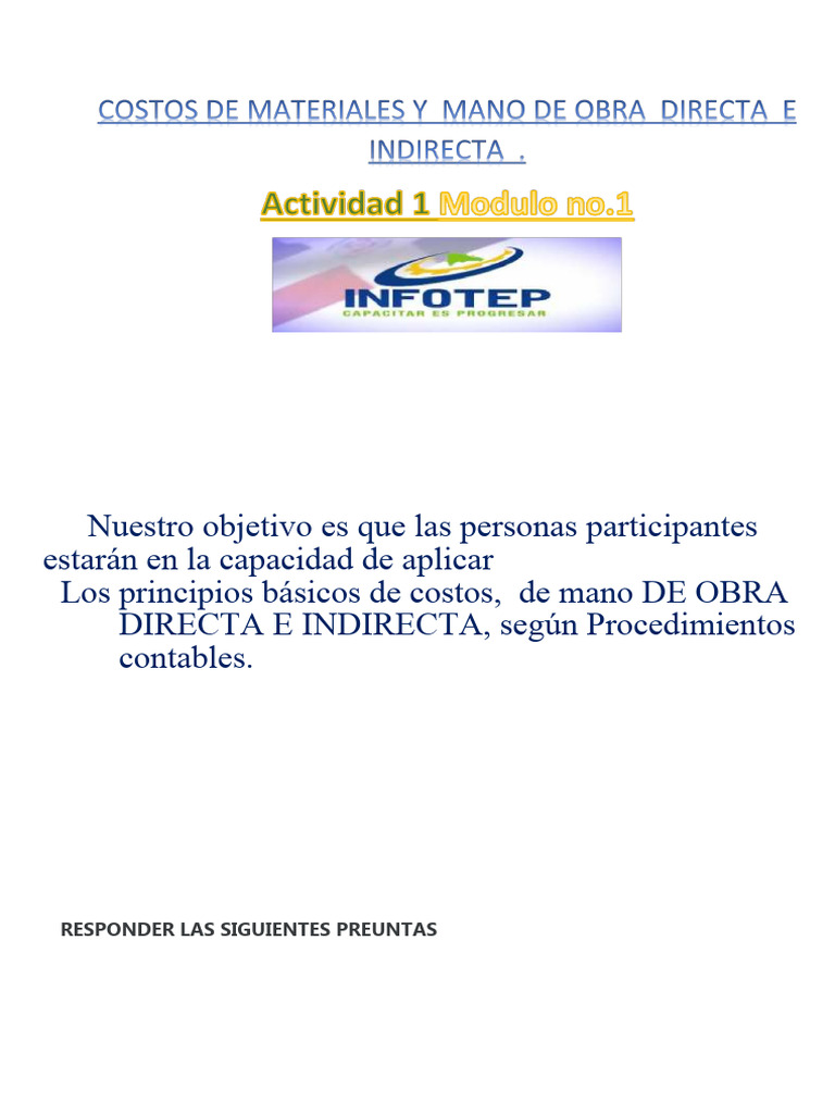 Mano de Obra Directa: Es la que se relaciona de manera directa con una unidad del