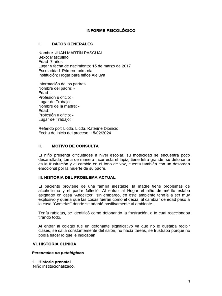 INFORME PSICOLÓGICO